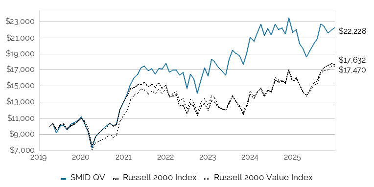 - SMID QV begins with a starting universe of around 1,000 profitable small- and mid-cap U.S. stocks.